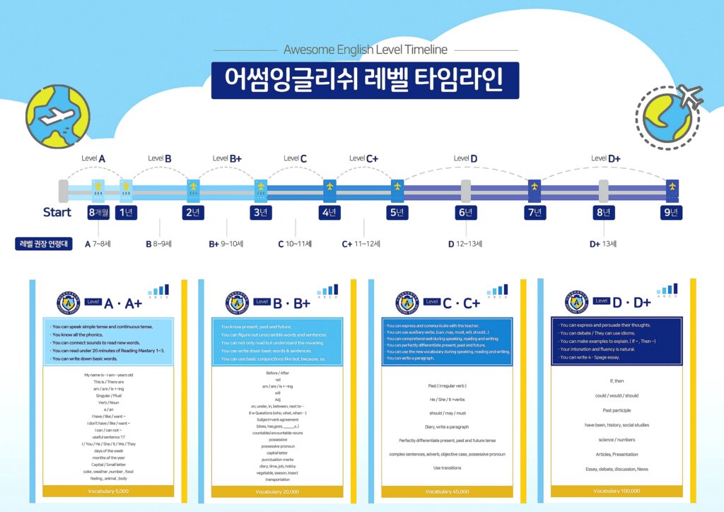 * 자료의 레벨별 기간과 연령은 학생이 어썸에 처음 온 시기 등